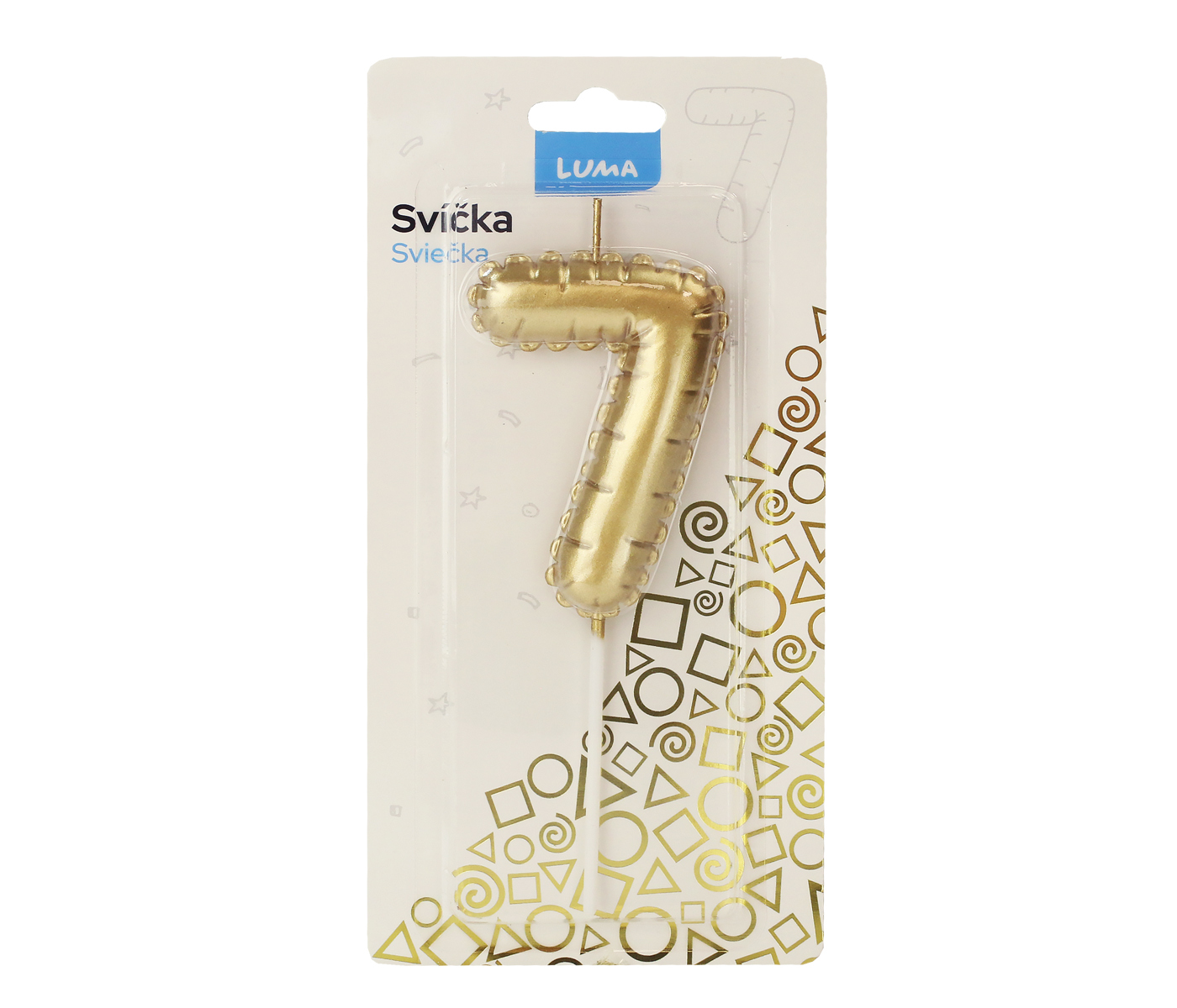 Svíčka č. 7 balónek ZLATÝ LUMA