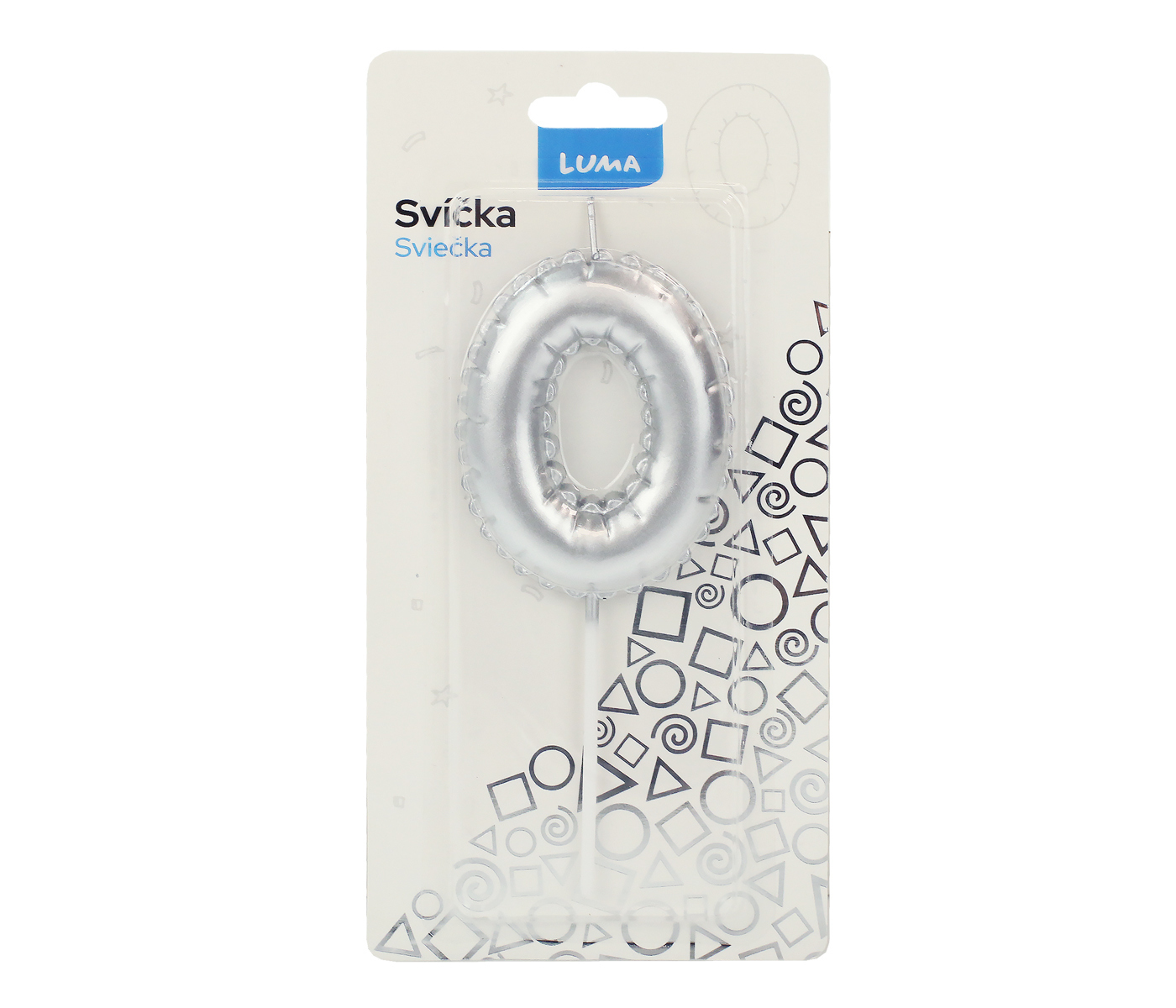 Svíčka č. 0 balónek STŘÍBRNÝ LUMA