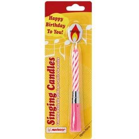 Dortová svíčka k narozeninám, hrající. Růžová barva. číst celé