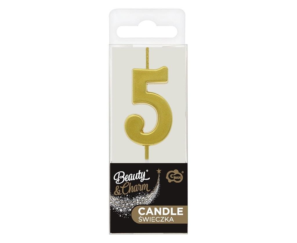 Świeczka piker B&C cyfra 5 metaliczna złota 9,5cm