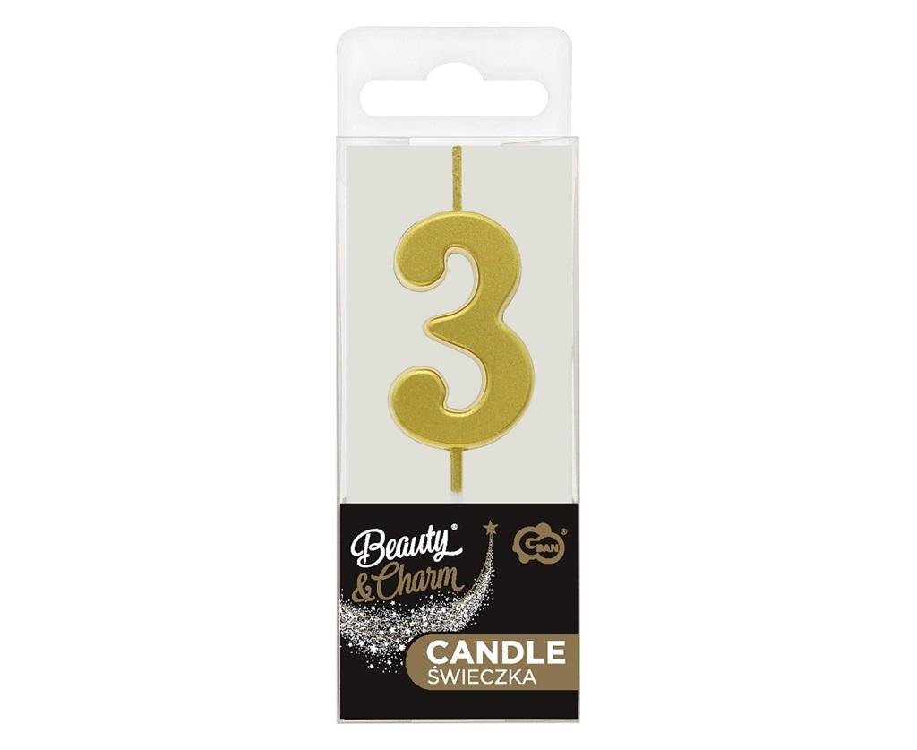 Świeczka piker B&C cyfra 3 metaliczna złota 9,5cm
