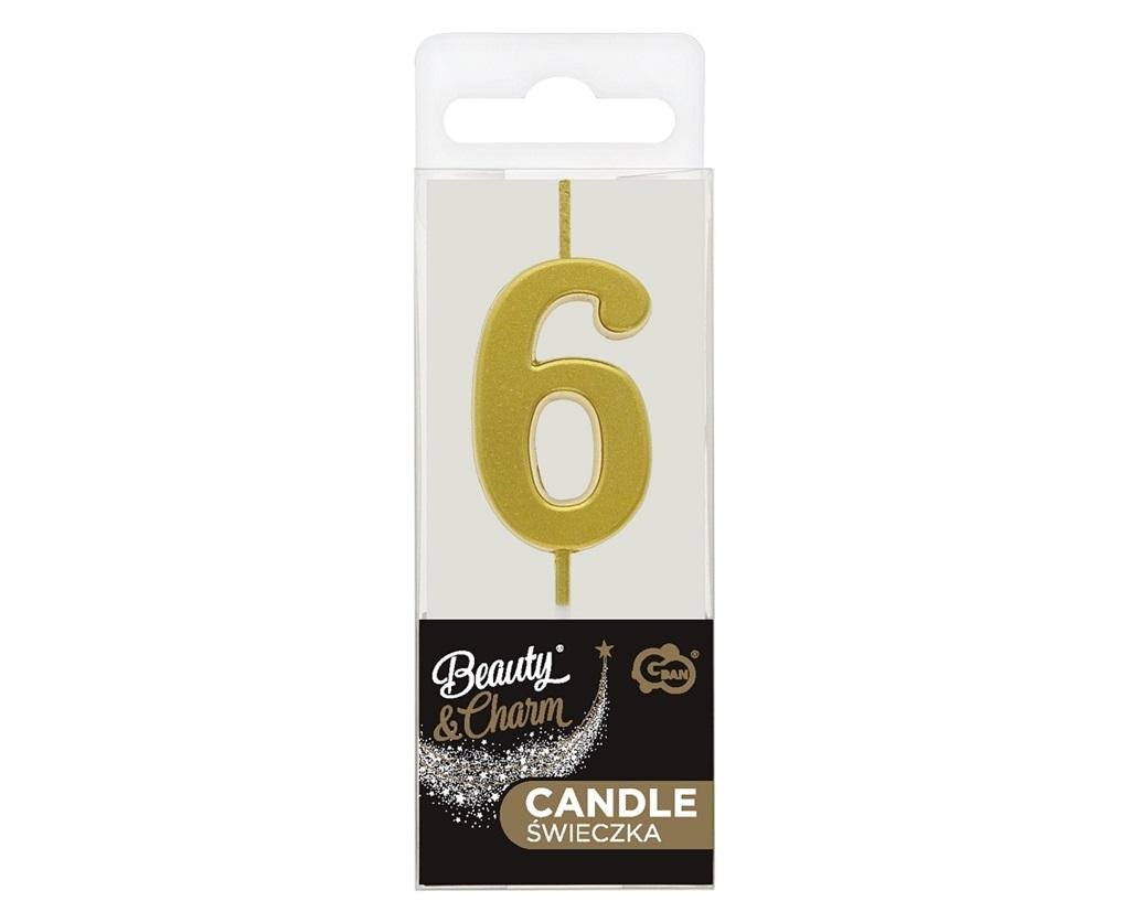 Świeczka piker B&C cyfra 6 metaliczna złota 9,5cm