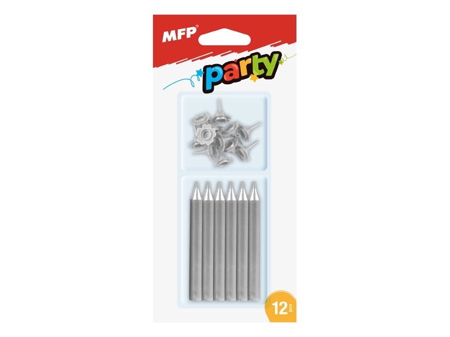 Sada dortových svíček - stříbrná barva. Sfoukávání svíček u dortu je nezbytnou součástí narozeninových oslav. Dortové svíčky nabízíme v několika barvách a tvarech. Najdete u nás také oblíbené fontány na dort.