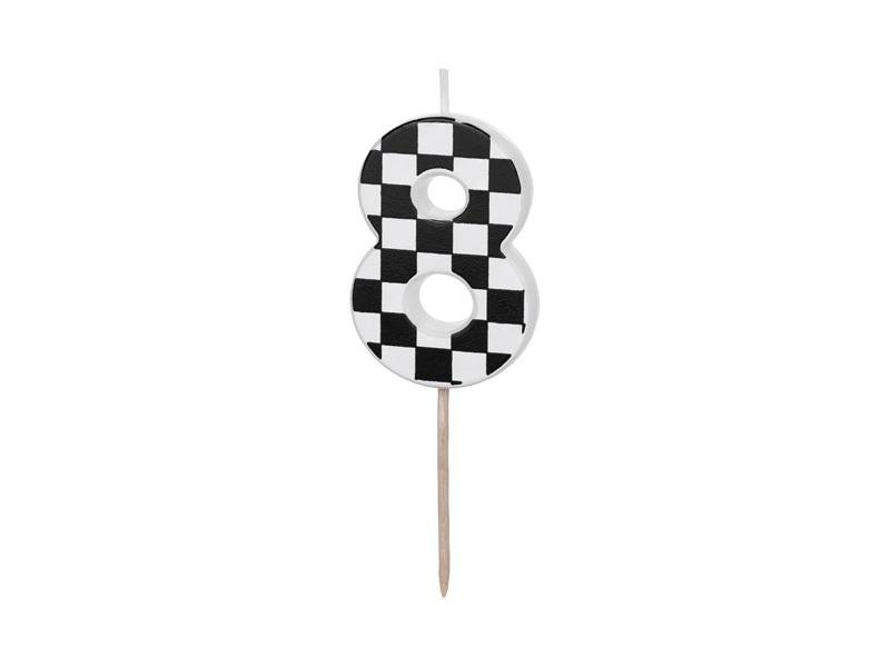 Świeczka urodzinowa Cyferka 8 ze wzorem szachownicy, rozmiar ok. 5.5 cm. číst celé
