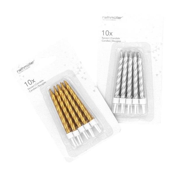 Świeczki urodzinowe złote srebrne z podstawkami 10szt
