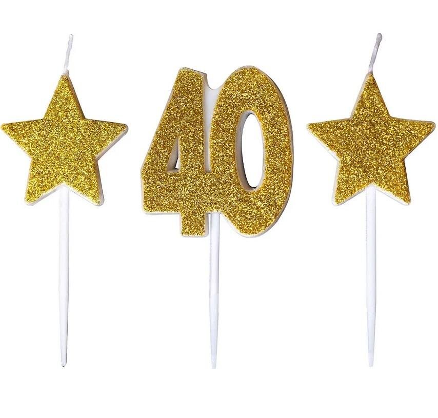 Świeczki urodzinowe, złoty brokat "40" i dwie gwiazdki SH-588