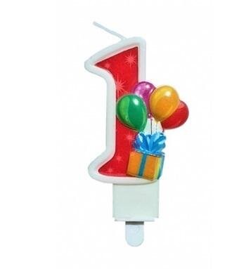 Świeczka urodzinowa z Balonami SF-907-1 Cyferka "1" wysokość świeczki: 8 cm číst celé