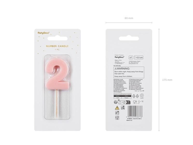 Świeczka urodzinowa Cyferka 2, w kolorze jasnoróżowym, rozmiar ok. 5.5 cm. číst celé