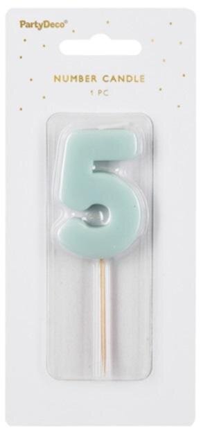 Świeczka urodzinowa Cyferka 5, w kolorze jasnoniebieskim, rozmiar ok. 5.5 cm. číst celé