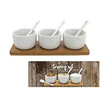 Servírovací set.Rozměry : 27 × 7 cm, výška 8 cm.Barva : bílá.Materiál : porcelán. číst celé