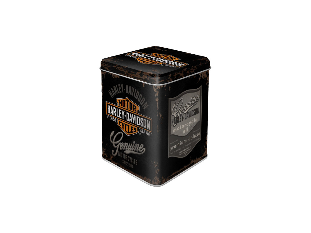 Retro plechová dóza na čaj s textem je originální dekorace.