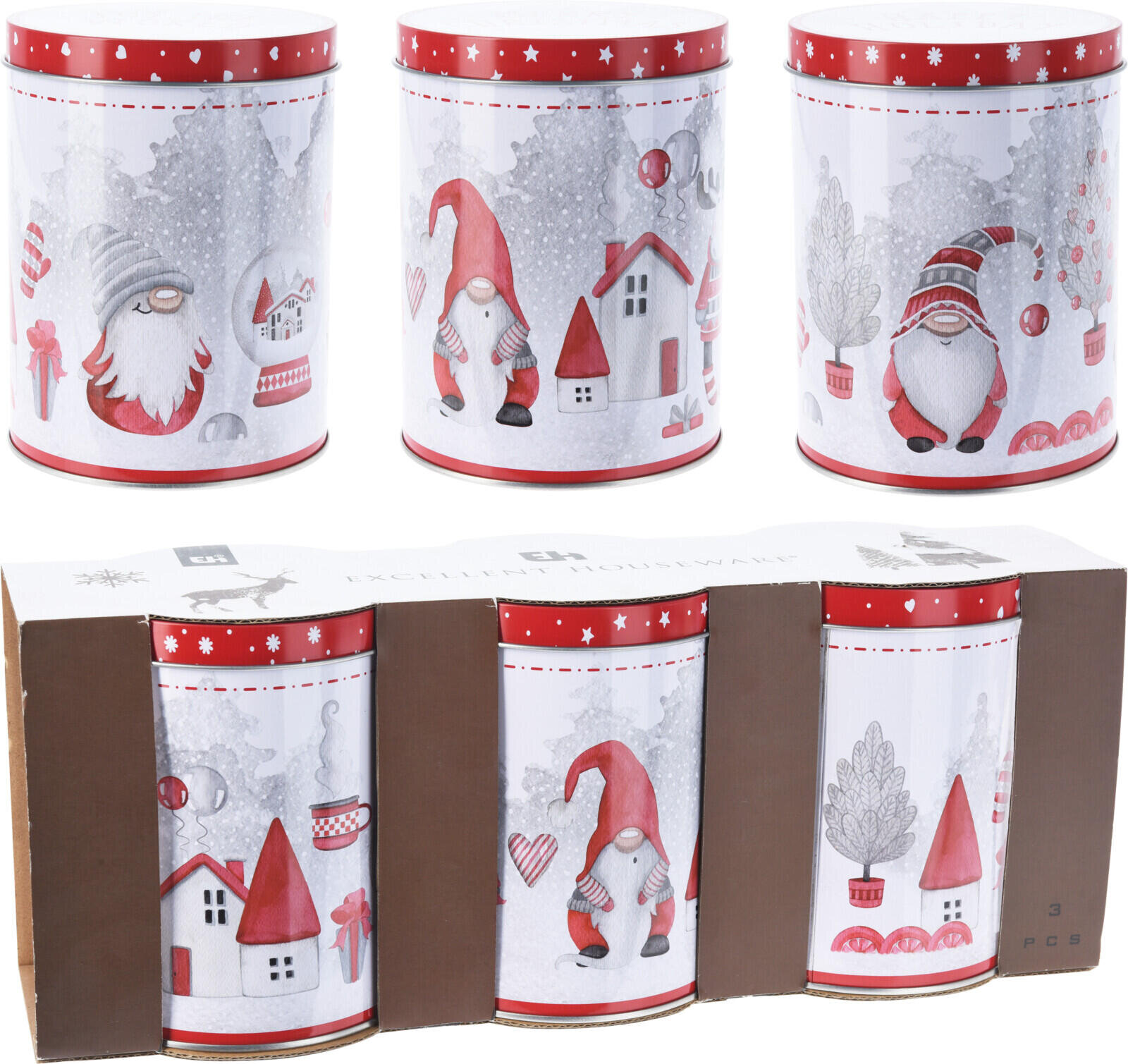 Dóza plechová kulatá VÁNOČNÍ pr. 10,5 x 14 cm, sada 3díl.
