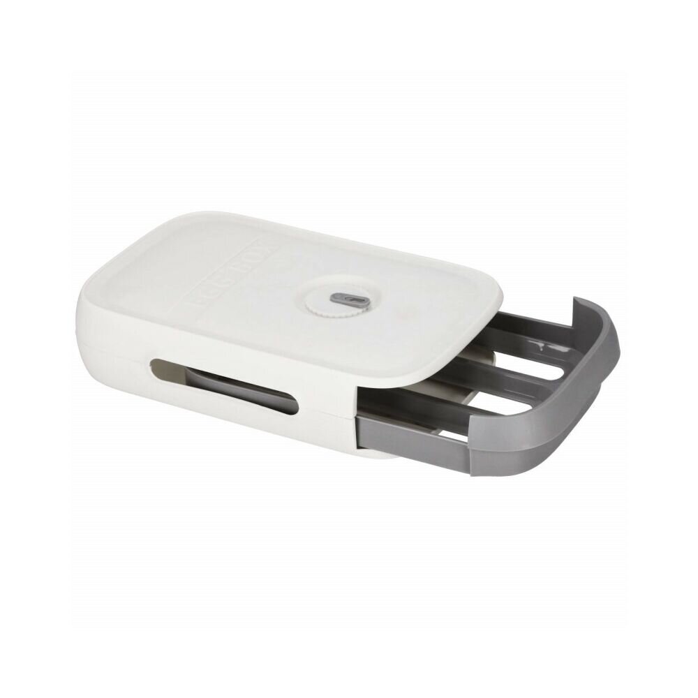 Tento držák je vyroben z pevného a odolného materiálu, který zároveň zajišťuje nízkou hmotnost a jednoduchou manipulaci. Izoluje vejce od ostatních potravin, čímž přispívá k lepšímu zachování jejich čerstvosti. Praktický knoflík umožňuje snadno označit datum spotřeby, abyste vždy věděli, kdy vejce ještě použít.