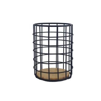 Stojan na příbory.Rozměry : průměr 10,5 cm, výška 14,5 cm.Barva : kombinace černá, přírodní.Materiál na bázi dřeva, kov.