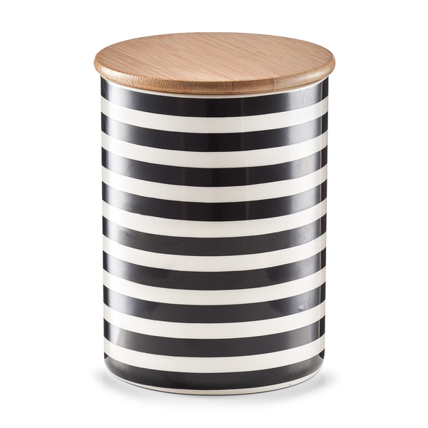 Zeller ZELLER Nádoba s bambusovým víkem, Stripes, bílá/černá, 11x15cm univerzální