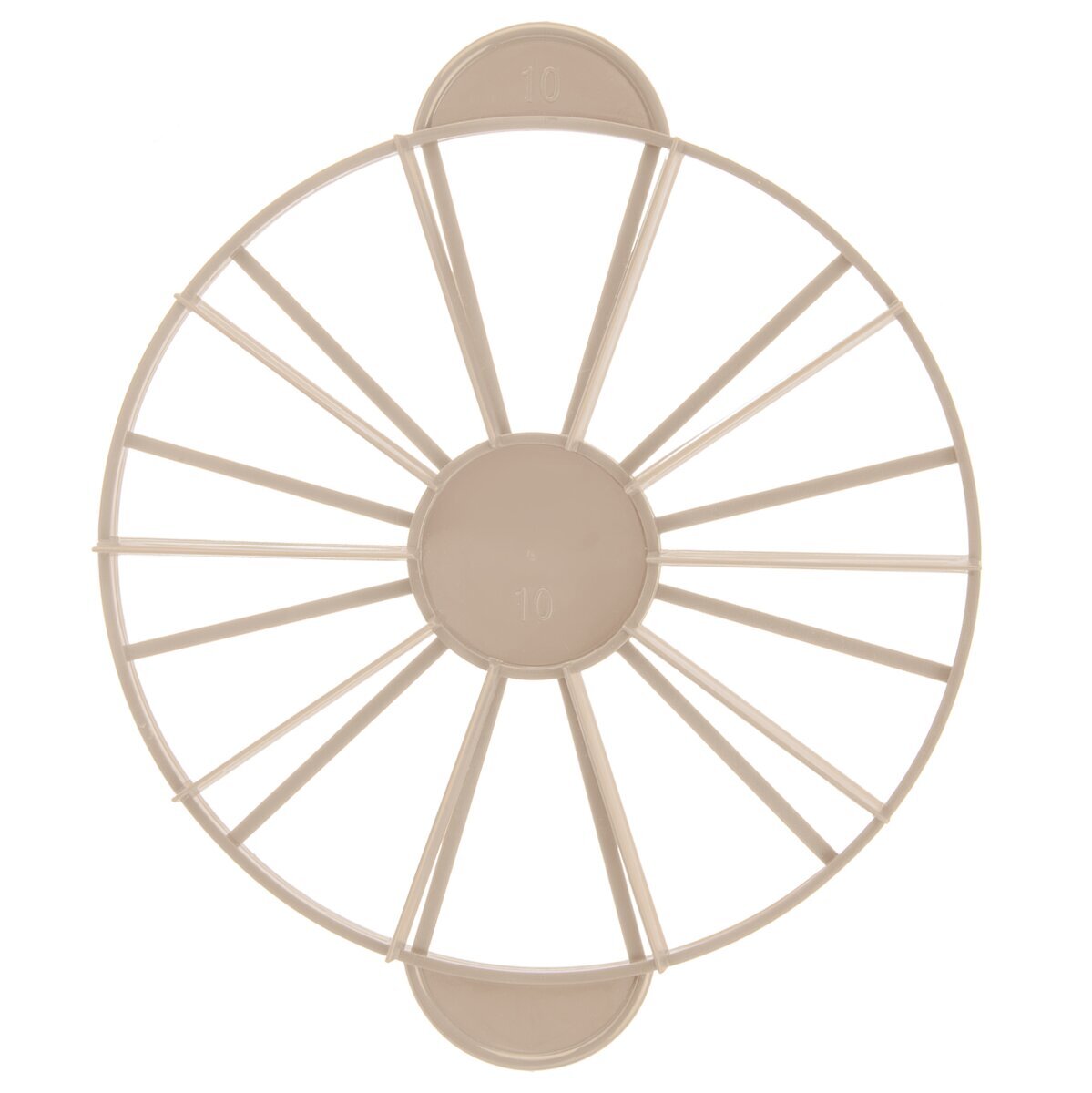 Oboustranná plastová šablona vám pomůže označit na kulatém dortu jednotlivé výseky. Dort můžete s touto šablonou rozdělit na pravidelné 10tiny nebo 12tiny. Stačí ji přiložit na horní plochu dortu, jemně na ni zatlačit a máte viditelně vyznačeno, kde máte dort porcovat. Stejně dobře ji můžete využít při zdobení dortů, kdy vám pomůže s pravidelností vzoru. Dva úchyty usnadňují manipulaci a zajistí stejnoměrný tlak na plochu dortu. Materiál: plast PP. Rozměry: pr. 26,5 cm, v. 2,5 cm. Lze mýt v myčce.