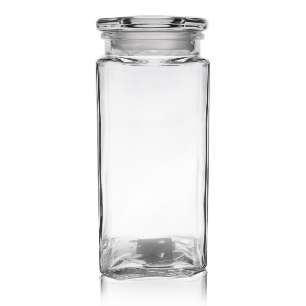 Dóza s víčkem na uložení koření, sušených plodů, bylinek a potravin... Materiál: sklo, plast PE (těsnění). Rozměry: objem 1,8 l, 10x10x24 cm. číst celé