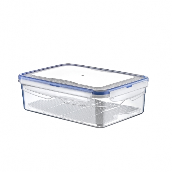Tato plastová dóza je průhledná a hranatá, takže přesně vidíte, co je uvnitř, a jednoduchý tvar umožňuje snadné stohování a úsporu místa v lednici nebo ve spíži. Na dně dózy je praktická mřížka, která umožňuje potravinám dýchat, což pomáhá zachovat čerstvost a kvalitu. Dóza je vhodná do chladničky i mrazničky (bez víčka) a snadno ji umyjete v myčce nádobí.