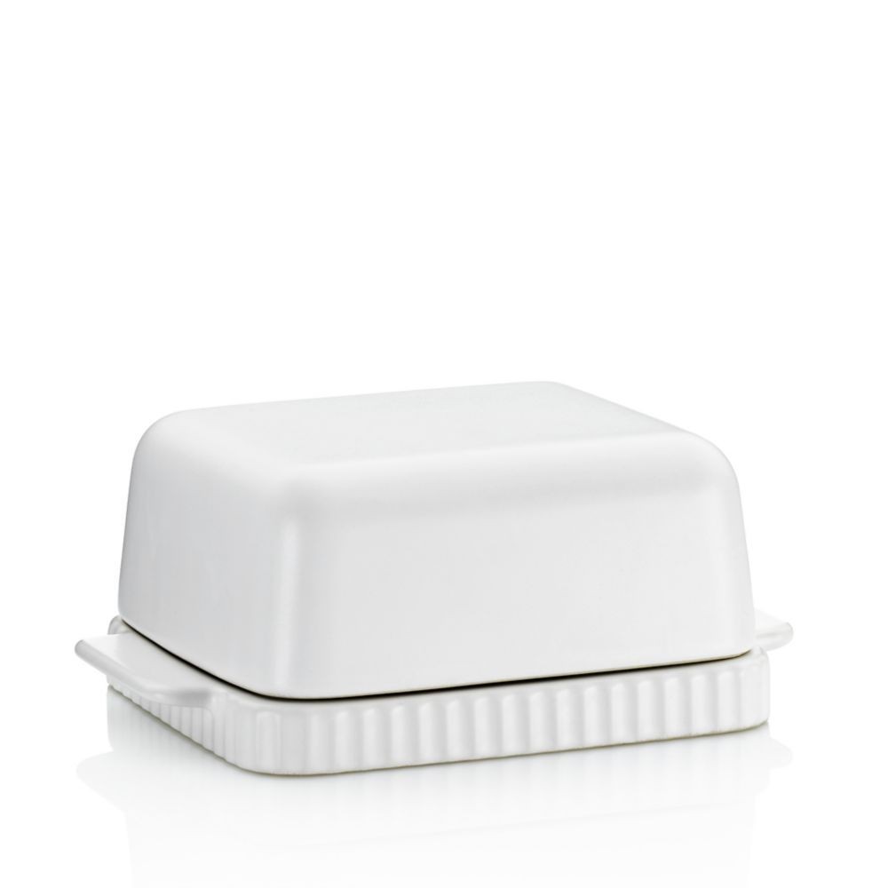 Keramická dóza na máslo s víkem od německé značky KELA. Nespornou výhodou oproti plastovým nebo akrylovým máslenkám je, že můžete máslo na keramice přímo krájet, aniž byste ji jakkoliv poškodili. Prostorné víko stačí otočit dnem dolů a máte praktickou misku třeba na rozpouštění másla v mikrovlnné troubě. Keramika je zdravotně nezávadná a uchová máslo v hygienickém prostředí..