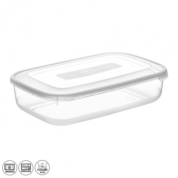 Díky svému odolnému plastovému provedení z materiálu PP je tato dóza ideální pro skladování různých druhů potravin nejen v chladničce, ale také pro jejich bezpečný ohřev v mikrovlnné troubě. Její kompaktní rozměry 20 x 13 x 5 cm zaručují, že nezabere zbytečně moc prostoru, a přitom pojme dostatečné množství potravin o objemu 1 litr. Víčko pevně těsní, což zabraňuje nechtěnému úniku pachů i rozlití obsahu.