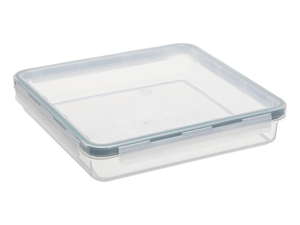 Transparentní dózu s víkem na pevné klipy skvěle využijete na uspořádání potravin v chladničce i mrazničce. Ideálně uloží například sýry a uzeniny. Díky nízkému profilu zajistí praktické využití prostoru. Díky těsnění se lépe uchová chuť potravin a vydrží déle čerstvé. Použít ji můžete i kdekoli jinde v domácnosti k uložení různých drobností (korálky, potřeby k šití nebo vyšívání, kutilové k uložení částí modelů, drobných náhradních dílů...). Materiál: plast PP, silikonové těsnění. Použití při teplotě od -20 °C do +100 °C. Rozměry: 22x22x4,2 cm, o. 1,07 l. Vhodná do myčky i do MVT (bez víčka).