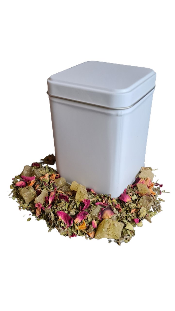 O dárkovém balení Dobrá nálada a energie 70g Dárková plechová dóza s víčkem s kvalitním sypaným čajem Dobrá nálada a enerige. Plechová dóza bílá matná s uzávěrem. Složení: Yerba Maté list, lyofilizovaný meloun kousky, lyofilizovaný ananas kousky, moringa list, ostružinové listy, okvětní lístky růží, přírodní aroma. Chuť ajurvédského čaje Dobrá nálada a energie: Ajurvédská bylinková směs Dobrá nálada a Energie je vynikající čaj se základem Yerba Maté, kousky lyofilizovaného melounu a ananasu dodají čaji jedinečnou chuť. Výborný antioxidant. Příprava ajurvédského čaje Dobrá nálada a energie: Vodou o teplotě 95 °C zalijeme čaj v poměru 2-3 dl vody na 3 čajové lžičky. Louhujte 5-8 minut, poté přeceďte. Můžete připravit více nálevů. Více o dárkových baleních.