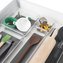 Košík/organizér pomůže přehledně uložit a uspořádat různé předměty a pomocníky v zásuvkách i jiných úložných prostorách. Sami si sestavíte potřebný počet různě velkých a tvarově odlišných organizérů podle velikosti zásuvky nebo tvaru jiného úložného prostoru. Využijete je v kuchyni na kuchyňské pomocníky, v koupelně na kosmetiku, pracovně na kancelářské potřeby, v dílně na šicí potřeby, kutilské potřeby... Velmi praktické jsou protiskluzové nožičky a vnitřní odnímatelná vložka na dně organizéru. V naší nabídce najdete několik velikostí a tvarů. Materiál: plast PETG, TPR (termoplastická guma) - šedá podložka. Rozměry: 16,3x16,3x4,8 cm. Není vhodný do myčky.