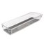 Košík/organizér pomůže přehledně uložit a uspořádat různé předměty a pomocníky v zásuvkách i jiných úložných prostorách. Sami si sestavíte potřebný počet různě velkých a tvarově odlišných organizérů podle velikosti zásuvky nebo tvaru jiného úložného prostoru. Využijete je v kuchyni na kuchyňské pomocníky, v koupelně na kosmetiku, pracovně na kancelářské potřeby, v dílně na šicí potřeby, kutilské potřeby... Velmi praktické jsou protiskluzové nožičky a vnitřní odnímatelná vložka na dně organizéru. V naší nabídce najdete několik velikostí a tvarů. Materiál: plast PETG, TPR (termoplastická guma) - šedá podložka. Rozměry: 32,5x9,3x4,8 cm. Není vhodný do myčky.