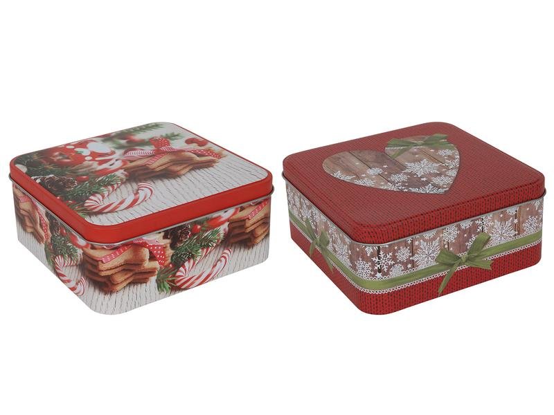 DÓZA NA CUKROVÍ 15,2*15,2*6,7CM VÁNOČNÍ MOTIV 2ASS