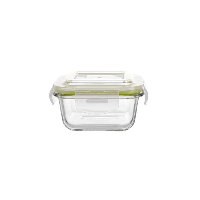 Rozměry: 11,2x11,2x5 cm, Kapacita: 320 ml, Surovina: borosilikátové sklo, plastové víko bez BPA, pryžové těsnění. Snadné a těsné zavírání. Hermetické zaklapávací víko. Odnímatelné gumové těsnění, snadno se čistí