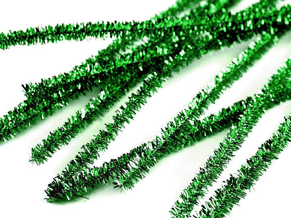 Chlupaté modelovací lurexové drátky Ø6 mm délka 30 cm - 100 ks - 2 zelená trávová