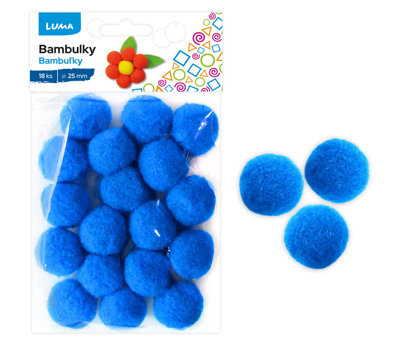 Bambulky modré, 18 kusů o průměru 25 mm jsou skvělým doplňkem pro všechny milovníky kreativního tvoření. Rozzařte své projekty jemným leskem a příjemnou plyšovou texturou, která zaručeně upoutá pozornost.