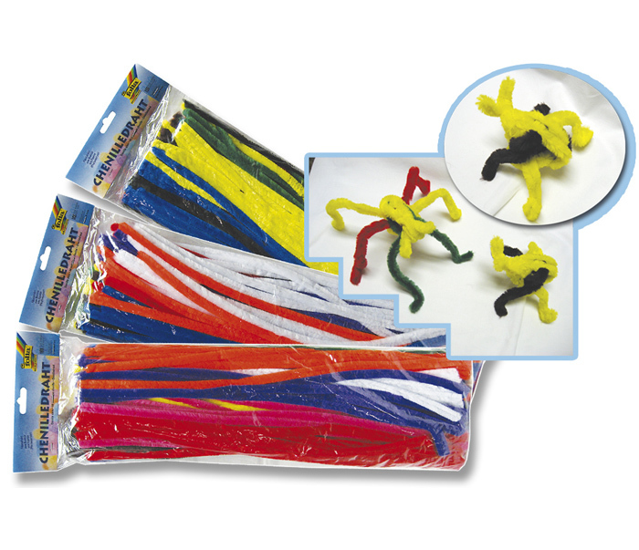 Tvarovatelný drátek opletený jemným žinylkovým vláknem. Používá se k výrobě různých hraček, ozdob, ale i k čištění dýmek. Lze je všelijak kroutit, splétat, stříhat, kombinovat například s bambulkami, knoflíčkami a podobně.Mix barevRozměr: 50 x 1,4cm