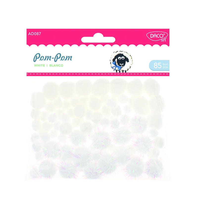 Oživte své tvoření s třpytivými bílými bambulkami! Tyto dekorativní prvky dodají vašim projektům jiskru a eleganci, která upoutá každého pohledem.