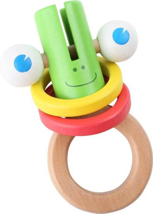 Vykulené oči, dva barevné dřevěné kroužky a chrastítko jsou součástí této motorické hry. Oči se protáčejí jako o závod a kroužky vydávají klapající zvuk. Tato zábavná hra podporuje motoriku miminek.Německá firma Legler zaměřená na výrobu kvalitních dřevěných hraček od roku 1996. Všechny dřevěné hračky značky small foot mají označení CE a jsou vyráběny dle evropské normy pro bezpečnost hraček EN 71. Použité barvy jsou speciálně vyvinuty pro dřevěné hračky a jsou odolné i proti slinám dětí. Dřevo, které se používá pro tyto hračky, většinou pochází z lesnických společností zapojených do zalesňování. To nabízí všem zákazníkům možnost přispět k zachování přirozeně rostoucích lesů. Dřevěné hračky small foot jsou zářivě barevné produkty, které jsou vyrobeny převážně z přírodních surovin - dřeva. Dětem dělají radost od útlého věku, rozvíjí jejich hmatové a smyslové dovednosti. Cílem značky small foot je podporovat duševní a fyzický vývoj dětí.