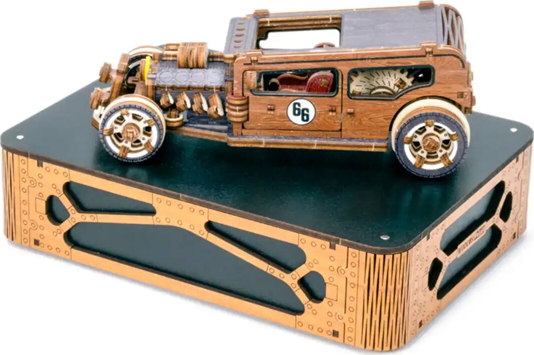 Klasický americký vůz Hot Rod s velkými motory upravený pro vyšší rychlost. Tento model má několik skvělých detailů jako jsou dveře, které se otevírají se zastavením, a také poznávací značku jako ve skutečném autě! Náš dřevěný Hot-Rod má plnou sadu pohybových funkcí a při pohledu na toto auto shora přes střechu uvidíte také detailní motor, dvojité sedadlo i řadicí páku. A samozřejmě nádherný design, díky kterému si Hot Rod zamilujete! Model má několik detailů skutečného automobilu: - dveře, které se otevírají se zastavením, - poznávací značku, - přední otočná kola, - setrvačníkový mechanismus, - vratná kola, - detailní motor, - dvojité sedadlo, - řadící páku. 3D puzzle WOODEN CITY Hot Rod je skvělým dárkem pro každého milovníka klasických amerických vozů.
