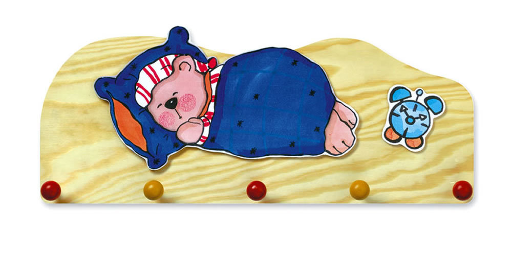 Věšák spící medvěd s pěti háčky je vyrobený z přírodního dřeva a zdobený jemným barevným motivem spícího medvídka, který rozzáří každý dětský pokoj. Tento kousek není jen praktický, ale také přináší do prostoru hřejivou atmosféru a radost každému dítěti. Díky pěti háčkům poskytuje dostatek místa pro zavěšení dětských bund, čepic, batohů nebo oblíbených doplňků.