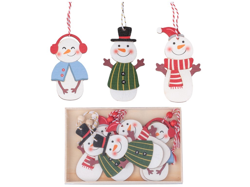 Závěs dřevo 6 ks 60x100mm sněhuláci mix, barevná