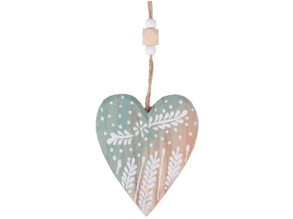 Závěs dřevo 90x110mm srdíčko, přírodní, modrá