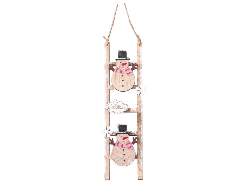 Závěs dřevo 85x240mm sněhuláci s žebříkem, přírodní