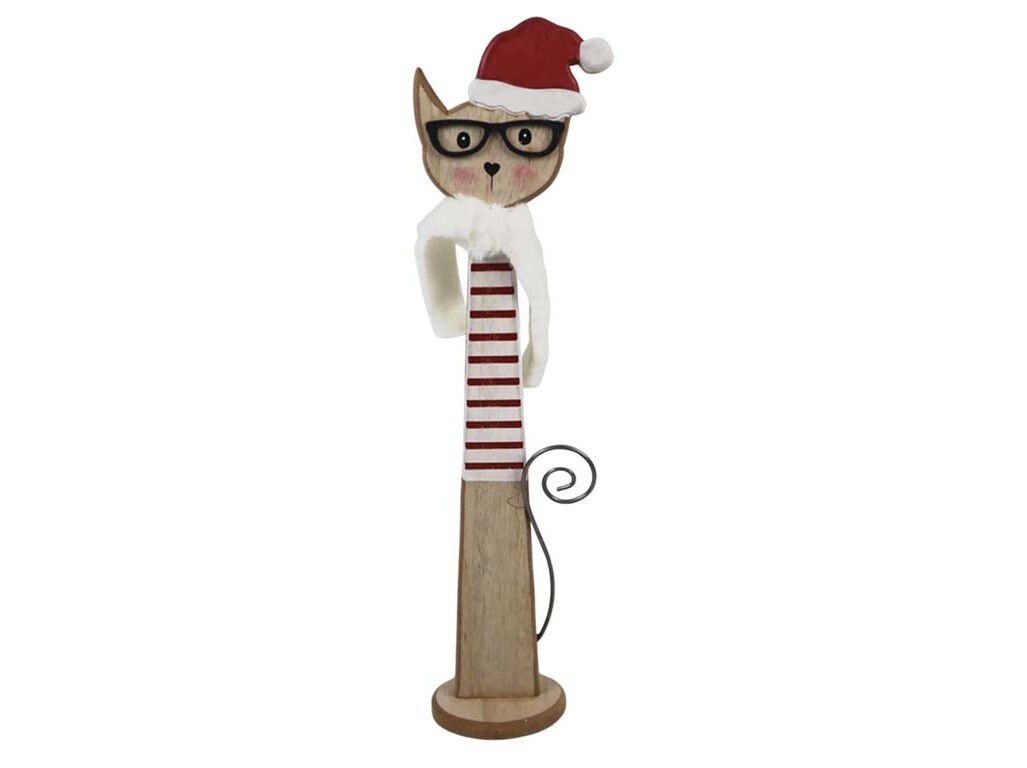 Dekorace dřevo 100X450mm kočka na postavení, přírodní, červená, bílá