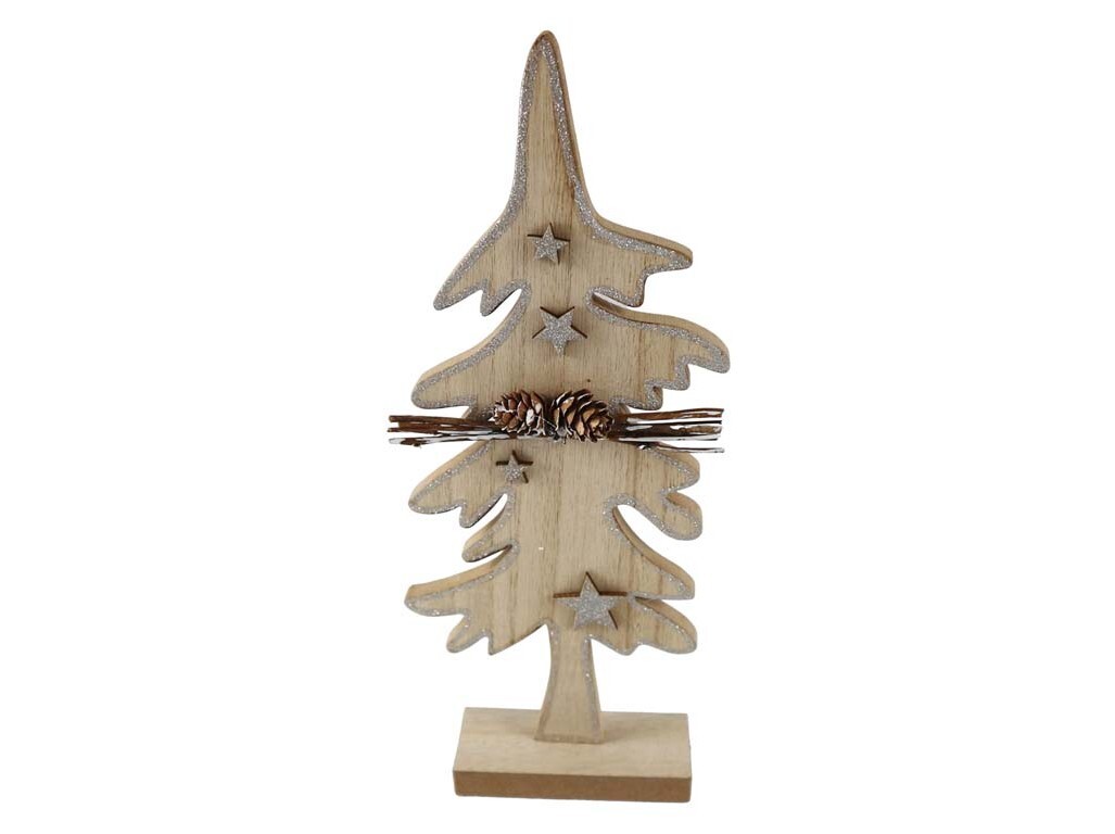 Dekorace dřevo 120X300mm stromek na postavení, přírodní s gliterm