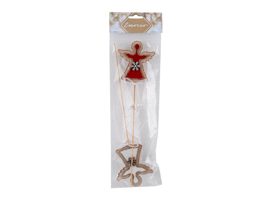 Zápich dřevo 2ks 70x80mm + špejle Anděl, přírodní s glitrem, červená, bílá