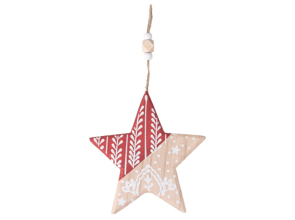 Závěs dřevo 145x155mm hvězdička, přírodní, červená