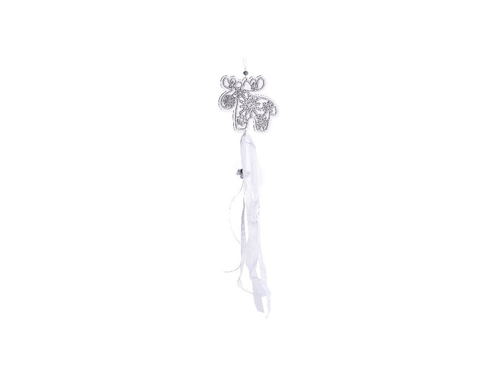 Závěs dřevo 530 mm Sob, bílý se stříbrným glitrem