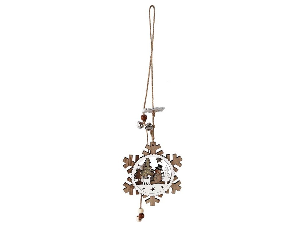 Závěs dřevo 105x115mm vločka, přírodní, bílá