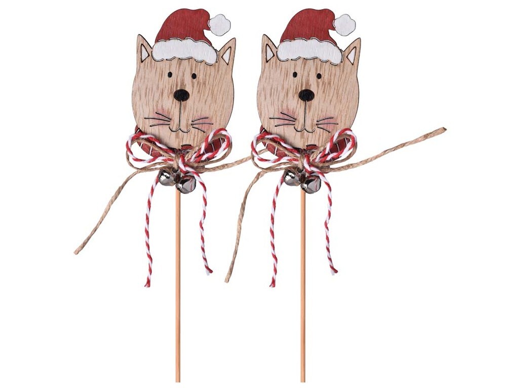 Zápich dřevo 2ks 50x77mm + špejle Kočka, přírodní, červená, bílá