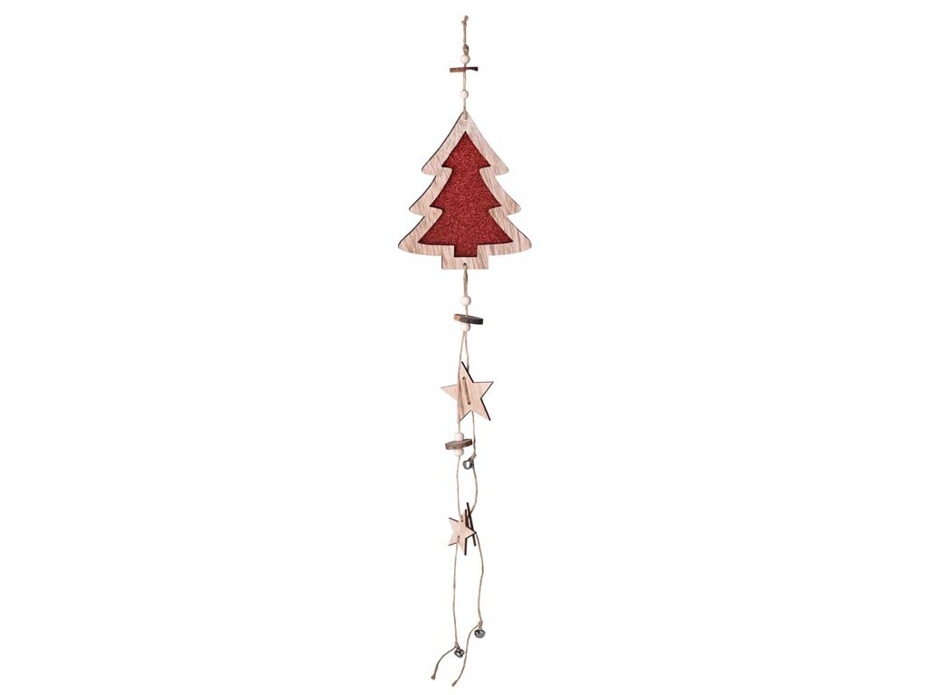 Závěs dřevo 135x160mm strom, přírodní s glitrem, červená