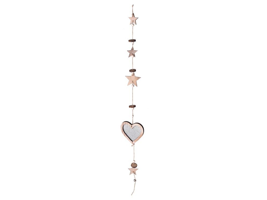 Závěs dřevo 102x105mm srdce, přírodní s glitrem
