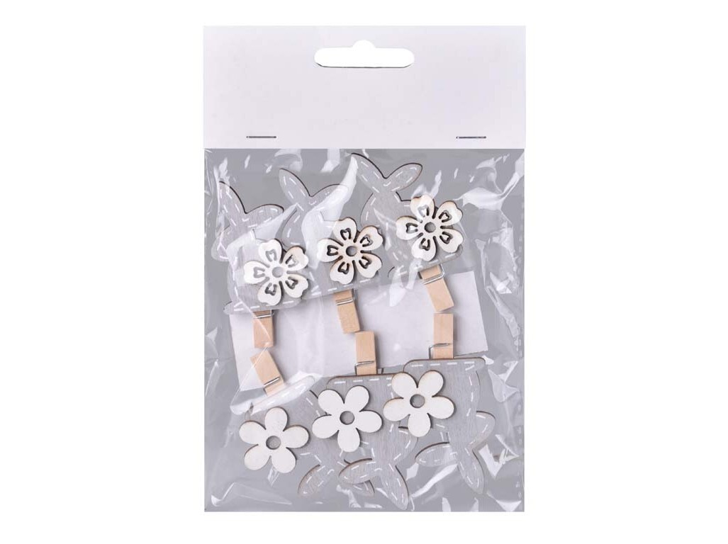 Dekorace dřevo 6ks 35x65 mm zajíček kolíček šedobílý, mix